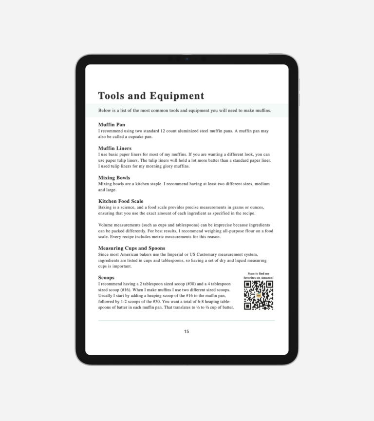 Topics inside the book include how to create bakery style muffins, how to properly measure flour, how to release stuck on muffin tops, how to store and freeze muffins as well as recommended tools and equipment for making muffins.